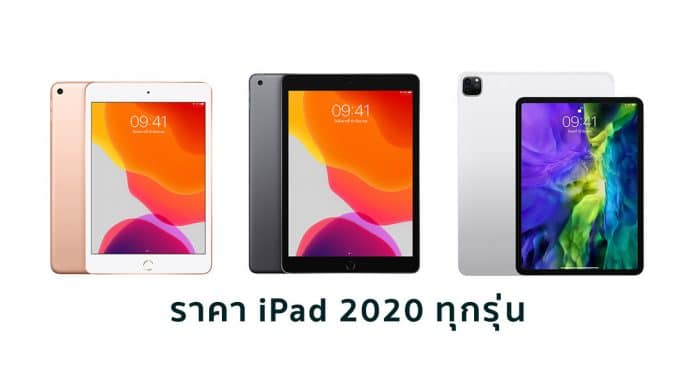 อัพเดทราคาล่าสุด ของ iPad ที่วางขายปี 2020 ราคาเริ่มต้น 10,900 บาท มีทั้ง iPad 7, mini, Air, แพงสุดคือรุ่น Pro เริ่มที่ 27,900 บาท